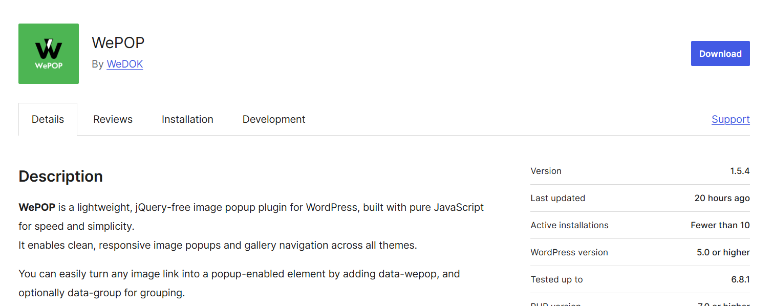 WePOPは、画像ポップアップまわりでよくある悩みを一つずつ丁寧に解決するために、実務目線で開発されたシンプルなプラグインです。